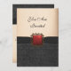 Élégante et formelle, cette invitation à la fête de fiançailles noire et crème se fait avec un design noir sur damas noir et un parchemin à l'aspect ancien. Les graphiques d'un ruban noir au milieu séparent les deux couleurs, avec un joyau rouge et or étonnant, au milieu du ruban. Tous les côtés du texte de la carte sont entièrement personnalisables pour votre événement spécial. Idéal pour les anniversaires, les anniversaires, les activités caritatives ou tout autre événement.