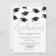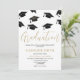 Modern Elegant Graduation Party Invitation. avec des casquettes de mortier noir en chute, et un modèle de texte moderne qui est facile à personnaliser.
