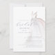 Cette invitation comprend une simple robe mariage couleur aquarelle et une calligraphie bleue poussiéreuse personnalisée.