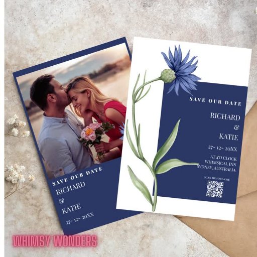 Invitation Dusty bleu Bold Floral élégant code Qr mariage dan