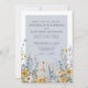 Faire-part de mariage bleu Duisy avec Fleurs Jaunes. Insufflez à votre mariage une élégance naturelle grâce à cette invitation soigneusement élaborée, idéale pour des célébrations du printemps à l'automne. Le design présente une charmante bordure de fleurs sauvages dans les tons bleu, jaune, pêche et vert, associée à une douce verdure pour un look frais et accueillant. Un rectangle bleu poussiéreux encadre le texte, ajoutant de la profondeur et une touche moderne, tandis que les polices grises combinent écriture manuscrite et typographie serif classique pour un style raffiné et contemporain. Ce design saisit l'essence d'une campagne fleurie ou d'un jardin paisible, ce qui en fait l'endroit idéal pour les mariages en plein air, les réunions rustiques ou les élégantes fêtes saisonnières. Entièrement personnalisable, vous pouvez ajuster les couleurs du texte, du rectangle et des éléments floraux en fonction de votre vision unique. Disponible sous forme d'invitation imprimée ou de fichier numérique téléchargeable, ce design équilibre parfaitement beauté naturelle et charme sophistiqué, offrant un ton chaleureux et accueillant pour votre journée spéciale.