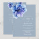 Invitation Dusty Blue Chic Aquarelle Floral QR Code Mariage