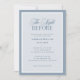 These elegant, old money style rehearsal dinner invitations feature a dusty blue border. There is a mix of classic text and modern calligraphy that says "the night before," for a classy and minimalist design perfect for your timeless, formal wedding.