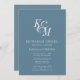 Dusty Blue Elegant Classic Monogram Mariage Rehearsal Dinner Card Invitation. Célébrez votre journée spéciale avec cette belle et élégante carte de faire-part de mariage pour embellir votre occasion spéciale. Tous les textes sont pré-arrangés pour que vous personnalisiez facilement et rapidement avec vos propres détails.