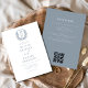 Invitation Dusty Blue Floral Crest Monogramme Mariage QR Code