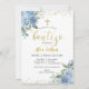 Dusty Blue Floral Espagnol Boy Bautizo Invitacion