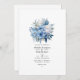 Faire-part de mariage floral bleu poussiéreux. Idéal pour un mariage dans le jardin. Le code QR au verso se dirige vers votre site mariage où les gens peuvent en savoir plus et rsvp