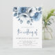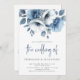 Invitation Dusty Blue Florals Script QR Code Mariage