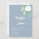 Célébrez votre amour avec cet élégant faire-part de mariage monogramme bleu poussiéreux. Avec un arrière - plan bleu poussiéreux doux aux accents de verdure aquarelle et un monogramme élégant, cette invitation est parfaite pour les couples à la recherche d'un design mariage moderne et d'inspiration nature. Customisez facilement avec vos détails.