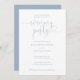 Cette élégante invitation à la soirée mariage bleu poussiéreux peut être personnalisée avec vos détails de célébration mis en typographie chic. Conçu par Thisisnotme©