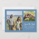 Le bleu et blanc poussiéreux, sauf la date, est simple et élégant. Il sera beau avec de simples brins de la respiration de bébé ou en complément d'un bouquet coloré de vos fleurs préférées. Le code QR permet aux clients d'obtenir facilement les détails de votre journée spéciale.