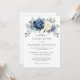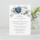Faire-part de mariage floral bleu roux avec élégant bouquet de bleu marine, bleu royal, blanc, or, ivoire champagne, rose couleur rousse, bourgeons de fleurs ranunculus et sauge vert eucalyptus feuilles et élégant bouquet aquarelle. Veuillez me contacter pour toute aide sur la personnalisation ou si vous avez besoin d'un autre produit avec ce design.