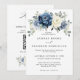 Invitation Dusty Blue Navy Ivory Floral Boho Mariage QR Code