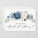 Dusty bleu floral vous serez ma servante d'honneur Invitation avec élégant bouquet de bleu marine, bleu royal, blanc, or, ivoire de champagne, rose couleur rousse, bourgeons de fleurs ranunculus et sauge vert eucalyptus feuilles et élégant bouquet d'aquarelle. Veuillez me contacter pour toute aide sur la personnalisation ou si vous avez besoin d'un autre produit avec ce design.