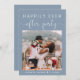Élégant étage bleu poussiéreux ou faire-part de mariage privé et invitation à la réception qui comprend votre photo de jour de mariage et "Happily Ever After Party" dans un mélange de typographie blanche simple et un script blanc chic avec des swashes. Ajoutez vos prénoms et votre date de mariage. Au contraire, entrez l'adresse URL de votre site Web mariage pour créer un code QR pour vos invités à scanner pour tous les détails et à RSVP en ligne, personnalisez votre faire-part de mariage et l'invitation de réception et ajoutez vos noms dans un script signature.