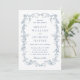 Classic dusty blue floral wedding invitation with a floral crest and monograms on the back. For more advanced customization of this design, please click the DESIGN TOOL BUTTON above!