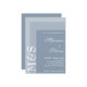 Simple suite de faire-part de mariage chic et moderne pour mariées qui ornent leurs cérémonies en bleu poussiéreux. Tous ensemble sur une police blanche moderne avec initiales sur le côté.