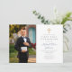 Invitation Dusty Blue Stripes Cross Boy Photo First Communion