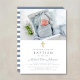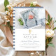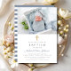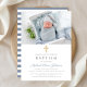 Invitation Dusty Blue Stripes Cross Photo Boy Baptême