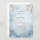 Un design onirique et éthérée évoque un pays merveilleux d'hiver serein. Des branches délicates ornées de fleurs enneigées encadrent un arrière - plan doux et aquarellé dans des tons bleu et blanc poussiéreux. Cette composition artistique est parfaite pour un couple célébrant leur journée spéciale au milieu de la beauté de la saison hivernale, offrant un cadre romantique et élégant pour leurs noces.
