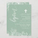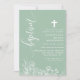 Invitation Dusty Mint Blanc Floral Élégant Script Baptême