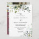 Cette invitation présente un élégant style moderne minimaliste avec des arrangements feuilles de verdure aquarelle et de belles calligraphies et des polices de typographie propres et serif sur un arrière - plan pourpre poussiéreux. La simplicité de ce design ajoute une touche d'élégance à votre mariage. Il fonctionne bien avec de nombreux thèmes mariages et certainement un grand ajout à votre mariage. Il suffit de customiser les noms et le libellé en quelques étapes simples et personnaliser la carte d'invitation avec votre photo du couple heureux et remplacer le code QR par le vôtre au dos de l'invitation pour donner à votre invitation une touche personnelle agréable. Veuillez noter : Les belles phrases élégantes de la typographie "gentiment", "et", et "réception à suivre" sur le devant de l'invitation ET "détails + gentiment répondre" au dos de l'invitation avec l'aquarelle verte feuillage eucalyptus arrangements feuilles et autres éléments d'illustration graphique comme les lignes et les boîtes rectangle ne peuvent pas être modifiés, changés, déplacés, ou supprimés. Elles sont réparées. Si vous devez modifier la couleur, vous pouvez customiser la carte d'invitation. Vous pouvez customiser et personnaliser l'invitation afin de répondre à vos besoins mariages et cliquez simplement sur personnaliser de l'invitation. Vous pouvez facilement personnaliser l'invitation avec le texte comme un téléchargement numérique et l'envoyer électroniquement et le partager avec vos invités par SMS, email, ou médias sociaux. Ou vous pouvez également choisir de poster l'invitation concernant vos détails à vos invités. Ou vous pouvez obtenir les deux — invitation imprimée et obtenir l'invitation sous forme numérique en téléchargement instantané.