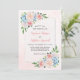 Ces invitations de mariage modernes présentent un design floral aquarelle avec des pivoines roses rousses poussiéreuses, des hydrangées roses et bleues sur un arrière - plan aquarelle. Personnalisez le libellé de l'invitation avec votre propre texte.