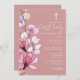 Cette élégante invitation à la première communion sainte et florale transparente et poussiéreuse rose peut être personnalisée avec vos informations en typographie chic avec votre monogramme au verso. Conçu par Thisisnotme©