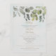 Faire-part de mariage moderne de feuillage Eucalyptus. Typographie gris et or. Turquoise poussiéreux. Site Web mariage et RSVP inclus.