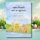 Bright spring colors and playful charm bring this watercolor Easter invitation to life, featuring a fluffy baby chick carrying a basket of colorful Easter eggs while a friendly bunny in a pink bowtie keeps watch nearby. Surrounded by blooming pastel tulips, the cheerful scene captures the joy and freshness of the season, warmly inviting guests to gather for a festive Easter brunch and egg hunt filled with laughter, celebration, and springtime fun.