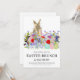 This charming design features whimsical hand-painted wildflowers including cornflowers, poppies, and delicate meadow garden florals—paired with an adorable Easter bunny rabbit. The vibrant watercolor artwork captures the fresh beauty and joyful spirit of spring, creating a warm and inviting tone for your holiday celebration.