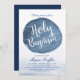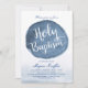 Faites une impression unique avec ces cartes d'invitation Baptême attrayantes. Il présente un tache coloré bleu de style aquarelle vers le centre. Sous cette tache bleue se trouve un endroit pour vos détails uniques en blanc. Tous les éléments de cet élément sont déverrouillés et personnalisables, alors amusez-vous à le créer et à le faire vous-même.