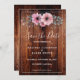 Fleurs d'aquarelle rustique sur bois de grange Enregistrer la date Invitation Ajoutez vos propres noms et texte pour personnaliser.