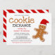 Invitation de fête de Noël conviviale pour les enfants, avec un arrière - plan blanc classique, un savoureux homme en pain d'épice portant un casquette du Père Noël rouge et un modèle festif facilement customisé.