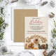 ÉCHANGE DE COOKIES DE FÊTE Invitation à une soirée d'échange de cookies - Une invitation naturelle présentant une photo de sablés faits maison et d'autres cookies, noix, pomme de pin, branches de pin et tranche d'orange sur un fond caramel clair. La typographie de l'invitation comporte un titre « Échange de cookies de fête » en rouge festif, calligraphie manuscrite et typographie sans empattement noire. Une note de bas de page pour apporter des cookies apparaît dans une calligraphie rouge assortie, et le dos de la carte est en papier kraft faux pour compléter l'aspect naturel. Un modèle de design agréable et facile à personnaliser. Joyuses Fêtes !