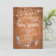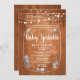 Rustique bébé sprinkle mason lampes à cordes invitation avec des lumières à cordes au-dessus d'un pot de mason artsy rempli de votre bébé sprinkle neutre genre personnalisé, douche ou couples détails douche et des fleurs délicates dispersées. Conçu par Thisisnotme©