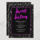 Personnalisez et customisez l'invitation fausse moelleuse Sweet 16. Sweet sixteen collection par PLdesign : Belle girly glamour noir foncé brillant parties scintillant scintillantes Invitation. Photo de la parties scintillant aux étincelles foncées !