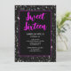 Invitation Éclairage noir Sweet 16 néon rose élégant script