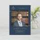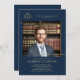 Célébrez votre diplôme d'études de droit - ou vous-même - avec cette élégante et classique invitation photo de fin d'études de droit avec un thème marine et or. Remplacez les échelles de justice par le logo de votre école ou laissez-le tel quel. Le design typographique contemporain est surélevé par les teintes dorées et la disposition minimaliste. Deux lignes dorées (effet numérique !) suggèrent un cadre moderne et minimaliste pour la photo. Customisez chaque ligne de texte. Marine et faux or.