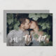 Carte de sauvegarde de date moderne avec "Save the Date" affiché dans un script aquarelle blanc superposé à votre photo de fiançailles horizontale plein cadre. Personnalisez le recto de la carte de sauvegarde de date avec vos noms, date de mariage, lieu de mariage, etc. La carte se retourne sur un fond gris uni ou de la couleur de votre choix. Ajoutez du texte et des images supplémentaires pour un design unique ! Disponible pour un téléchargement instantané, des cartes imprimées ou les deux.