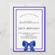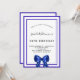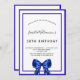 Une invitation moderne, élégante et raffinée. Un arrière - plan blanc décoré de cadres bleus royaux et d'un arc. Personnalisez et ajoutez un nom et des détails. Lettres de couleur noire.