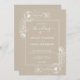 Invitation Écriture chic Blanc Floral Outline Gris Mariage
