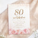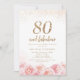 Invitation Écriture élégante or et rose florale 80e anniversa