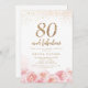 Moderne chic "80 et fabuleux" écriture, paillettes modernes de faux or et design floral aquarelle rose pâle, élégant et stylé, superbes invitations pour une fête d'anniversaire de 80 ans.