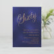 Une invitation design et moderne pour une fête du 60e anniversaire. Un arrière - plan bleu marine, de couleur inégale et le mot Sixty écrit avec d'élégantes grandes lettres de script en faux or. Personnalisez et ajoutez un nom et des détails du parti.