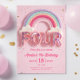 Invitation Editable Rainbow Fourth Birthday Invitation, Pink