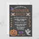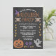 Cette invitation spooktaculaire Halloween Party Chalkboard comporte un arrière - plan de tableau noir, et un fantôme éffrayant, jack o' lantern, maïs bonbon, crâne et os. L'invitation parfaite à la fête d'Halloween pour n'importe quel âge ou événement thématique d'Halloween. Facile à personnaliser avec des options personnalisées.