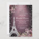 Invitation Eiffel Tower Diamonds Dark Roses Burgundy