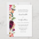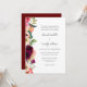Un faire-part de mariage de style boho rustique et élégant avec bordure gauche de pivoines d'aquarelle richement colorées, roses, anémones, fleur sauvage et verdure mixte. La palette de couleurs somptueuse est rose, rouge bordeaux, pêche, blanc cassé, vert et turquoise. Les appareillages de type de face utilisés dans le modèle texte transmettent les détails de votre mariage dans le style moderne avec les noms de la mariée et du marié en minuscules. Le libellé utilisé dans cet exemple est plus formel et comprend les noms des parents de la mariée et du marié. Vous pouvez modifier ce texte comme vous le souhaitez et le modifier en fonction de vos préférences. Le dos de l'invitation est un rouge bordeaux riche. Vous pouvez customiser la couleur arrière à la couleur de votre choix en sélectionnant une autre couleur arrière - plan. Ce jeu de couleurs est un choix approprié pour les mariages en toute saison de l'année. Personnalisez le texte avec vos détails mariages.