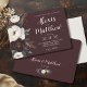 Invitation vos proches pour célébrer votre grand jour avec ce faire-part de mariage fleuri chaleureux et élégant. Avec un agencement époustouflant de fleurs de bordeaux, d'ivoire et de rougeurs douces aux délicats accents de verdure et d'or, ce design est à la fois intemporel et romantique. L'arrière - plan bordeaux profond donne un ton élégant et sophistiqué, idéal pour les mariages d'inspiration automne, hiver ou rustique. Le mélange soigneusement choisi d'écriture moderne et de polices serif classiques assure que vos détails se démarquent avec élégance. Parfait pour les mariages de vignobles, les réceptions de grange ou les cérémonies de jardin intimistes, cette invitation est un bel aperçu de votre histoire d'amour.